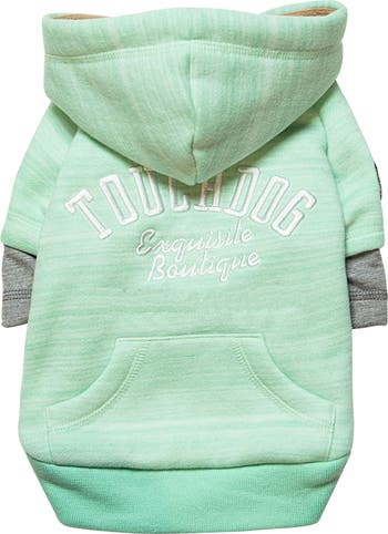 The Touchdog Hampton Beach ultra-soft sandblasted hoodie is composed of a blended Poly Cotton outer shell that is sand blast treated for an added softer feel. Front sleeves extend outward and grip onto the frontal legs for added warmth. Ethereal faded wash summer print along the back. Features ribbed turtle neck along the neck area with a dual toned plush hood for winded protection. Bridge pockets along the back with leash slit by the neck area. Machine washable. Available in Multiple Colors and Sizes.