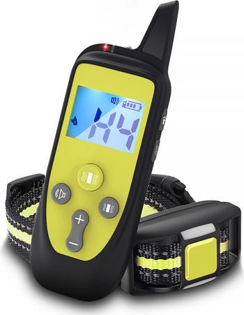 Bark train your fur friend with this dog collar that operates at an approximate range of over five hundred yards and features sixteen levels of sound and vibration. The collar has a one-touch activation transmitter with two channels, so you can train multiple dogs at once.