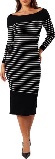 Baxtor Stripe Long Sleeve Midi Sweater Dress