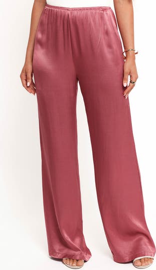 Glossy, high-shine fabric instantly elevates the look of these flowy wide-leg pants that stay stylish from 9 to 5 and beyond.