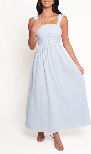 Be the belle of every garden party in this charming sundress cut from soft, airy cotton and sweetened by button accents at the bodice and a flowy, flared skirt.