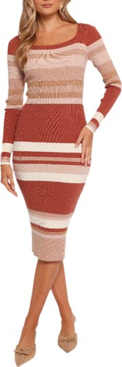 Colten Stripe Long Sleeve Rib Sweater Dress