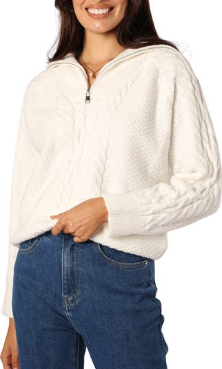 Puffy cable stitches add classic detailing to this pullover fronted by a quarter-zip closure for easy on-offs.
