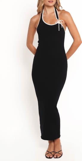 A wraparound halter neck ehances the playful vibe of this fitted sweater dress knit with a ribbed texture so you're always ready for a beach party or alfresco dinner.