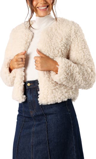 Fluffy high-pile fleece brings irresistible warmth to this seasonally perfect cropped jacket.