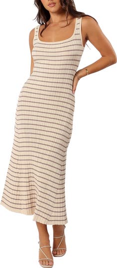 Stay cool in this sporty striped tank dress cut from a soft, stretchy rib in a figure-skimming silhouette.