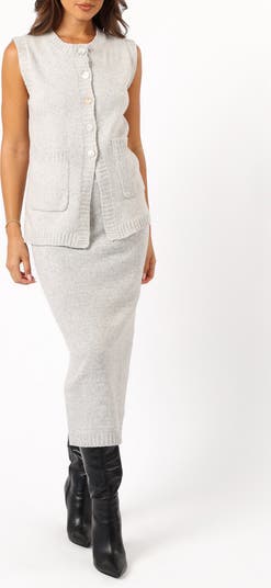 A sweater vest and skirt set work well together and will surely show up separately in other ensembles.