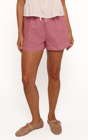A playful gingham print charms these relaxed elastic-waist shorts crafted from a supersoft and breathable cotton blend.