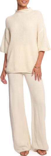 Level up your laid-back look with a chunky roll-neck sweater and a pair of softly knit pair of easygoing pants.
