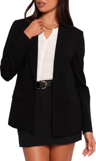 An open front adds contemporary appeal to a versatile blazer designed with floral-print lining and just the right amount of stretch for comfortable all-day wear.