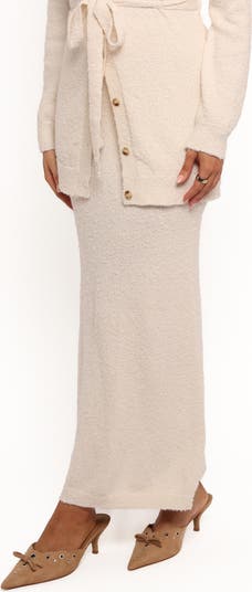 Curly bouclé yarns enhance the warmth of this soft figure-skimming sweater-skirt that's full of polish.