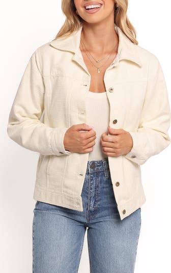 Bouclé texture enriches this easygoing jacket designed in a boxy, relaxed fit structured with vertical seaming.