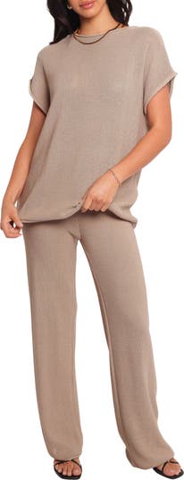 A matching top and pants set made from textured knit is sure to become your newest go-to for relaxing on lounge-filled days.