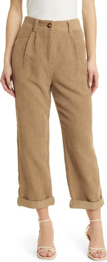 These pleat-front pants are crafted from soft corduroy and boast a high-waist, cuffed-hem silhouette.