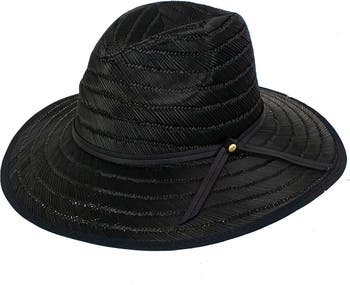 Interwoven straw creates an intricate design against a summery lifeguard hat that stylishly shields your eyes from the sun.