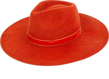 A matching velvet ribbon subtly trims the crown of this classic wool felt fedora hat made modern in a rowdy red shade.