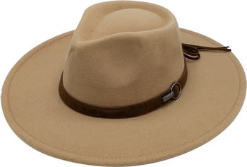 A faux leather trim at the crown is secured by a bow and adds a touch of chic style to this felt fedora.