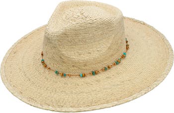 Colorful beads bring a pop of contrast to a band that encircles the crown of this smart Panama hat styled with a structured brim to keep the sun at bay.
