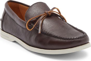 A moc-stitched toe shapes this classic boat shoe rendered in supple leather.