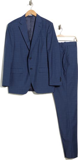 Refined and smart, this wardrobe-staple blue wool suit patterned in a windowpane check features a classically fitted jacket for an elegant look that can take you from business meetings to formal events. The flat-front trousers sit at the waist and complement the traditional detailing to keep the silhouette crisp and clean.