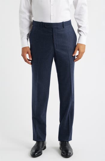 Smart and versatile, these dress pants tailored from a stretch-enhanced blend of wool and cashmere feature traditional flat-front construction that complements any semiformal look. Cut with a bit of extra room in the seat and thighs, they keep you comfortable and looking sharp in warm-weather settings and between-season occasions.