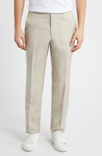 Smart and versatile, these dress pants tailored from a lightweight blend of wool and linen feature traditional flat-front styling that complements any semiformal look. Cut with a bit of extra room in the seat and thighs, they keep you comfortable and looking sharp in warm-weather settings and between-season occasions.