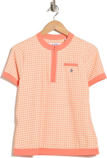 A bow-tie check pattern decorates this stretchy, quarter-zip golf polo enhanced with moisture-wicking technology so you can focus on your swing.