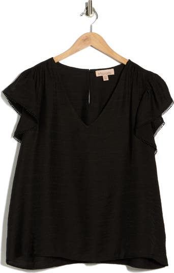 Perfect for casual days, this lightweight top is framed by fluttery sleeves with dainty lace trim for charming style.