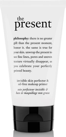 philosophy the present skin perfector and oil-free makeup primer is a colorless skin perfector that camouflages fine lines, wrinkles and pores, giving you a flawless airbrushed appearance. Its unique formula helps seal in your treatment products and moisturizers, providing natural antibacterial benefits.