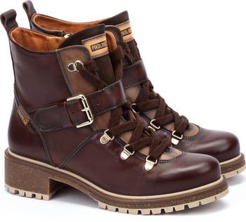 A lug sole and buckle strap dial up the rugged yet refined style of a lace-up bootie complete with a lightly cushioned insole.