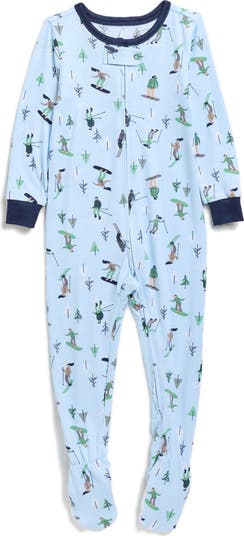 Festive ski print helps your little one drift off into sweet dreams in these soft and stretchy footed pajamas outlined with contrast cuffs.