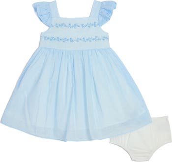 Outfit your little darling in this dress textured with enchanting embroidery and framed by fluttering sleeves. Matching bloomers complete this adorable look.