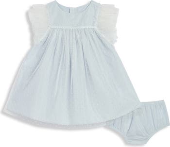 Outfit your little darling in this dress textured with enchanting embroidery and framed by fluttering sleeves. Matching bloomers complete this adorable look.