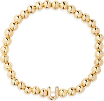 An initial charm centers this beaded stretch bracelet that brings plenty of shine to your wrist stack.