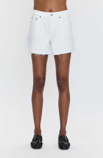 Low-stretch denim shorts featuring a crisp white wash and fraying hems make it look like you gave second life to a pair of old-faves.