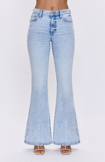 An on-trend high rise balances the flared legs of these retro-inspired jeans cut from premium low-stretch denim in a just-right wash.