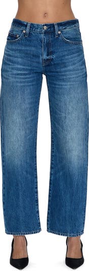 Sport a cool vintage-meets-modern look in straight-leg jeans crafted from nonstretch denim with a high waist and ankle-grazing hems.