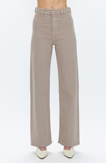Made with a flat front and no side seams for a sleek silhouette, these modern jeans comfortably hug the waist and relax into wide, raw-cropped legs.