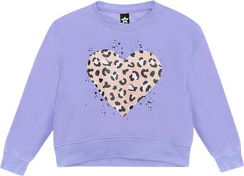 Upgrade their staples with this cloud-soft, cotton-forward sweatshirt featuring a cheetah-print heart graphic.