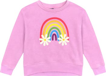 Upgrade their staples with this cloud-soft, cotton-forward sweatshirt featuring a cheerful rainbow graphic.