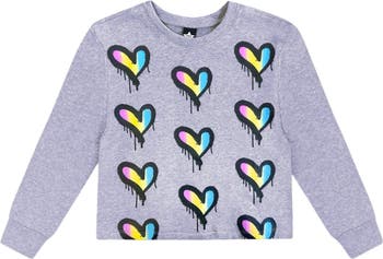 Upgrade their staples with this cloud-soft, cotton-forward sweatshirt featuring graffiti-inspired rainbow heart graphics.
