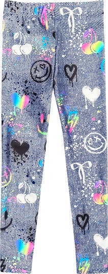 Your trendsetter will love to take on their day in bold style in these soft leggings covered in a graffiti-inspired print with a high shine finish.