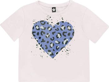Upgrade their staples with this cotton drop-shoulder T-shirt featuring a cheetah-print heart graphic.