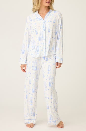 This set features a printed button-up shirt and matching drawstring pants made from a supersoft jersey to make bedtime extra comfy.