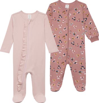 Stock the nursery with breathable essentials for baby with this duo of footies equipped with full zip closures for easy changes.