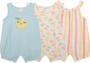 Give your baby a sweet ensemble for picnics and play dates with this assorted pack of colorful rompers made from a breathable cotton-based blend and snap buttons for easy changes.