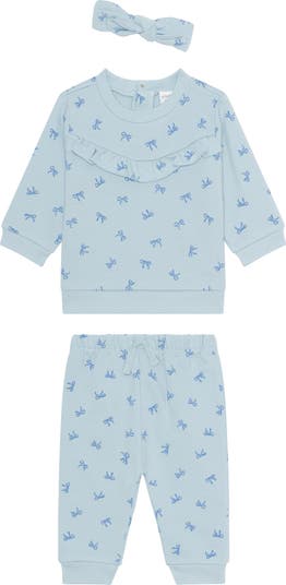 Baby will roam around and play comfortably in this cotton-blend set featuring a printed sweatshirt, some joggers and a matching headband.