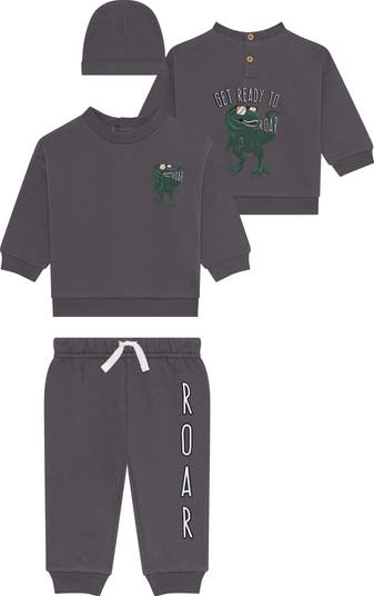 Baby will be ready for football season in this set featuring a chenille-patch sweatshirt, matching joggers and a hat.