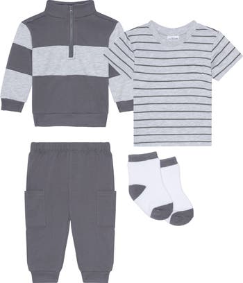 Laid-back outings were meant for the T-shirt and joggers in this easygoing cotton-blend set complete with a pullover and socks to complete their look on cooler days.