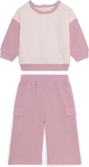 Baby will be comfortable in a coordinating sweatsuit made from a fleecy cotton blend that's soft and gentle against their skin.